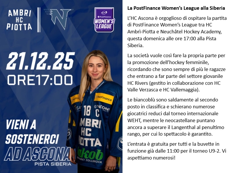 Per informazioni e iscrizioni: hcascona@hcascona.ch
