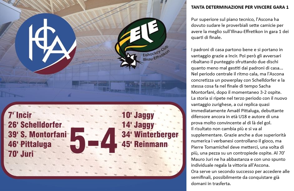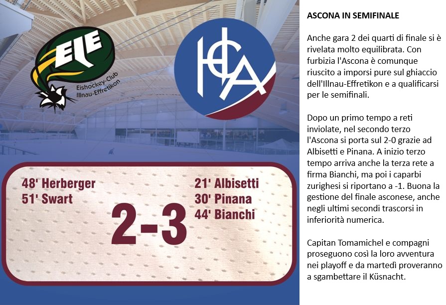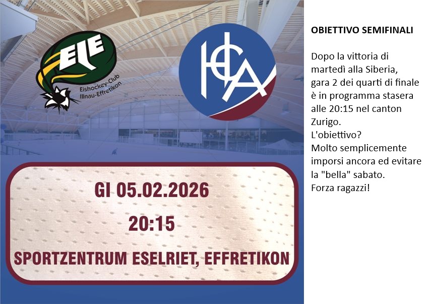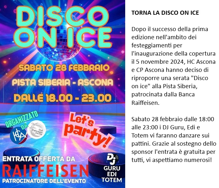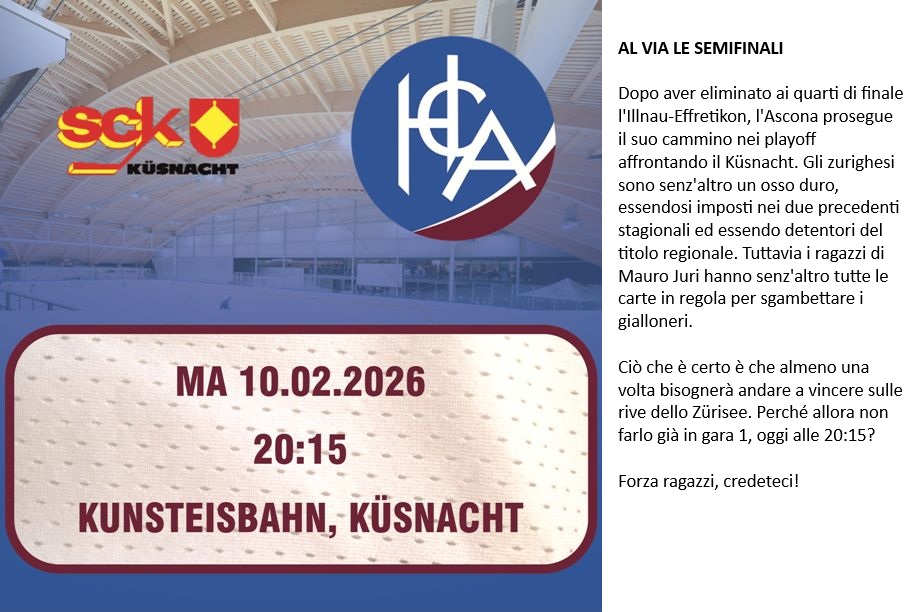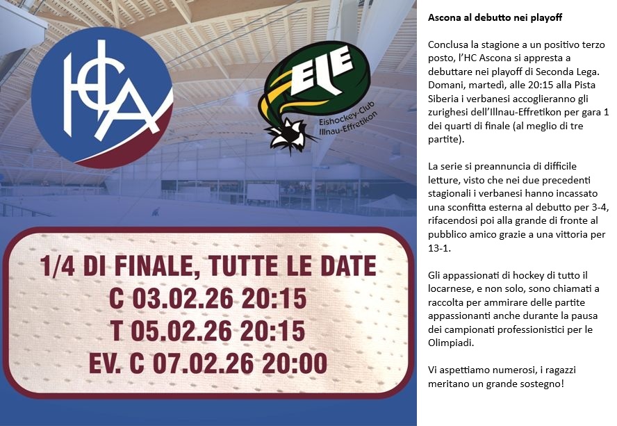Per informazioni e iscrizioni: hcascona@hcascona.ch